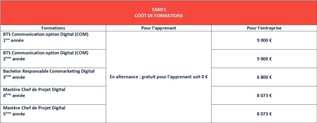 Tous nos étudiants peuvent se former en contrat d’apprentissage ou en contrat de professionnalisation, dans tous nos programmes du BTS Communication option Digital au Mastère Chef de Projet Communication Marketing Digital en passant par le Bachelor Marketing et Communication Digital.